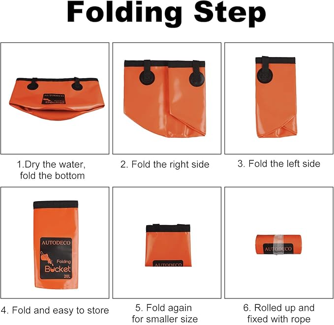 - Multi-purpose Fold Bucket: This AUTODECO Collapsible bucket is ideal for camping, fishing, traveling, boating, hiking, gardening, picnic, outdoor activities, daily use and car washing. It can be used as fish bucket, ice bucket, fruits and veggies basket, travel basin, coaches bucket for baseball, etc