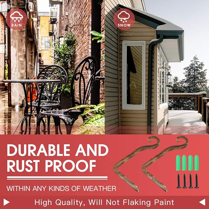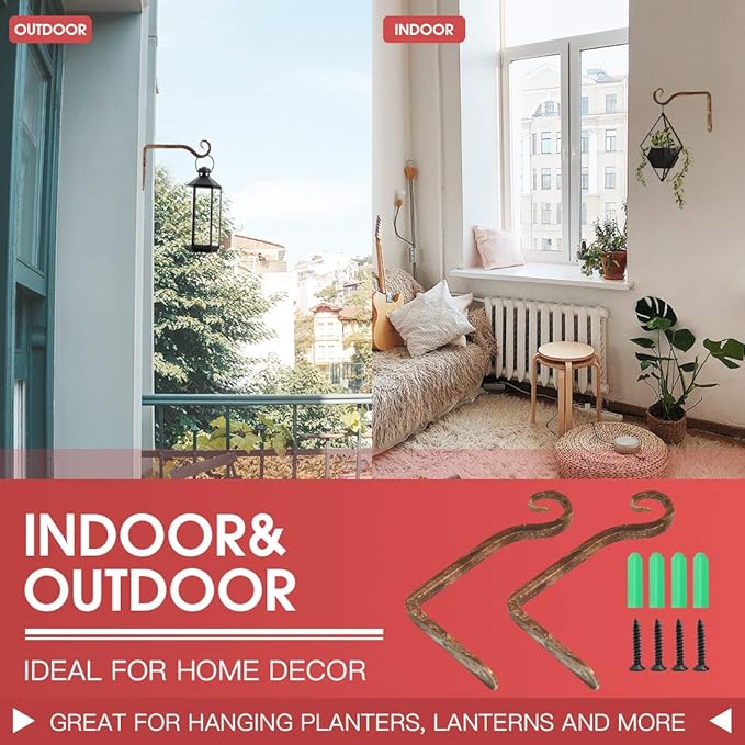 Jardim 2 Pack 6 Inch Premium Decorative Metal Iron Wall Hook, Indoor Outdoor Plant Hanger, Rustic Hanging Gardening Bracket Hook, for Planters, Bird Feeders, Lanterns, Wind Chimes (Coffee)