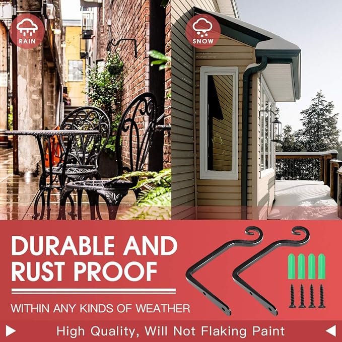 Jardim 2 Pack 6 Inch Premium Decorative Metal Iron Wall Hook, Indoor Outdoor Plant Hanger, Rustic Hanging Gardening Bracket Hook, for Planters, Bird Feeders, Lanterns, Wind Chimes (Black)