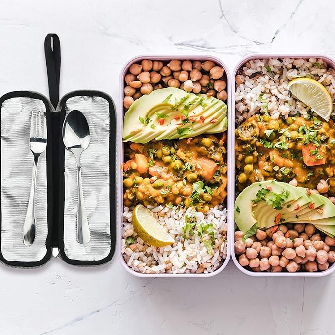 - Eco-Friendly Design: Protects enviroment by not using disposable cutlery and includes flatware holder for knives, forks, spoons, chopsticks, cleaning brush, straws.