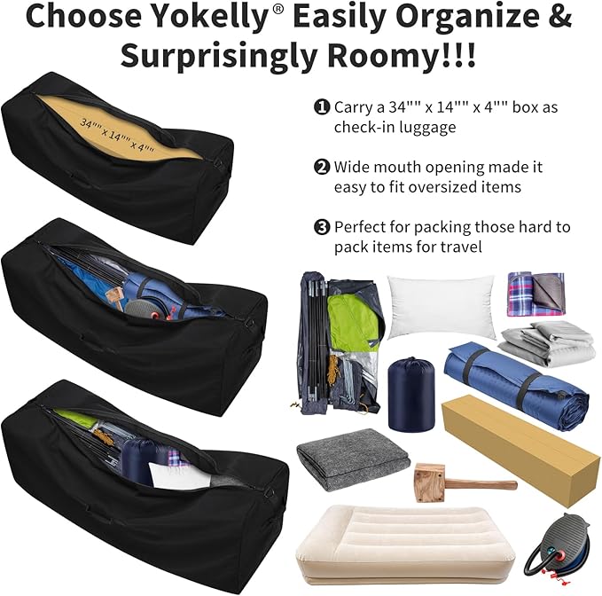 - Large duffle dimensions when full: 42*15*15 inches (L*W*H). Includes 2 web handles on the ends and 1 in the center with a full-length zipper for easy access.