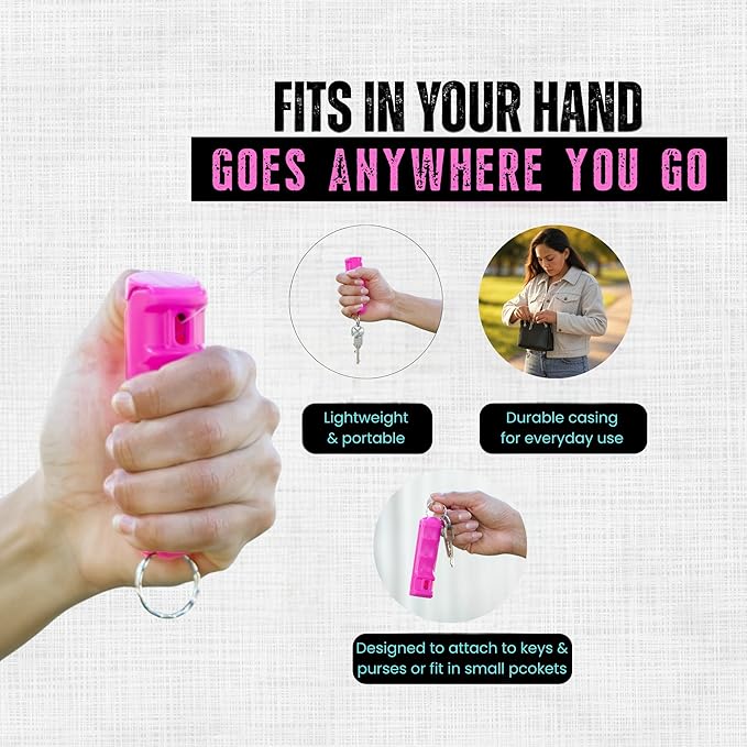 - Feel Secure- Our key chain pepper spray pack is small and lightweight which makes it convenient to carry on your keys when walking home at night or running through the park and is quick to deploy with one day. A discreet compact pepper spray case design that is easy to conceal and practical for your EDC kit.