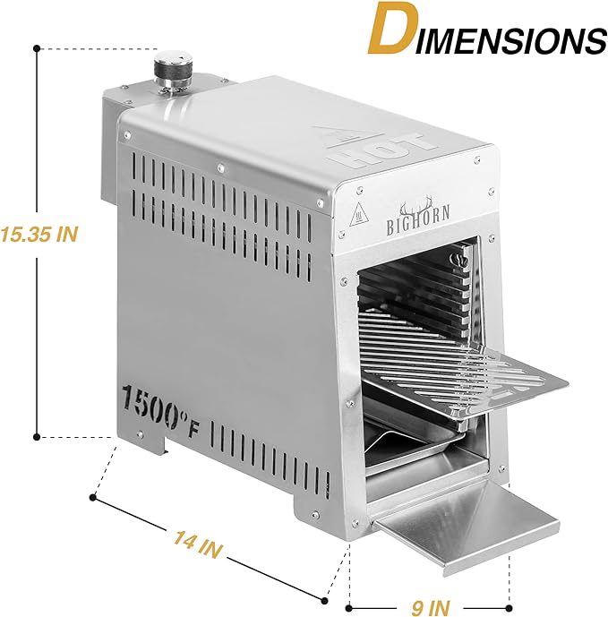 BIG HORN OUTDOORS Portable Infrared Broiler Propane Gas Grill, 1500 Degree Stainless Steel Tabletop Quick Cooking Steak Grill for Meat, Seafood, Veggies
