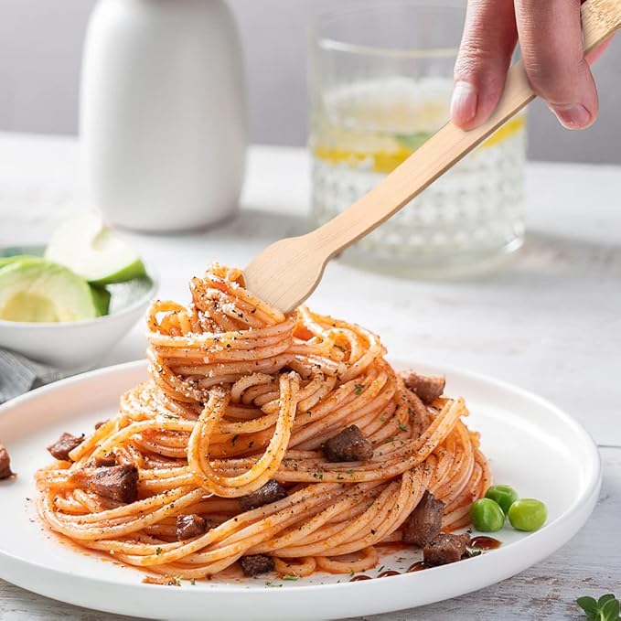 - ♻【WAHT IS INCLUDED】The heavy-duty tableware includes 100 bamboo forks, containing no harmful chemicals, splinter free. You can use it for dessert, fruit, salad with peace of mind. Use the tableware set to enjoy various cuisines.
