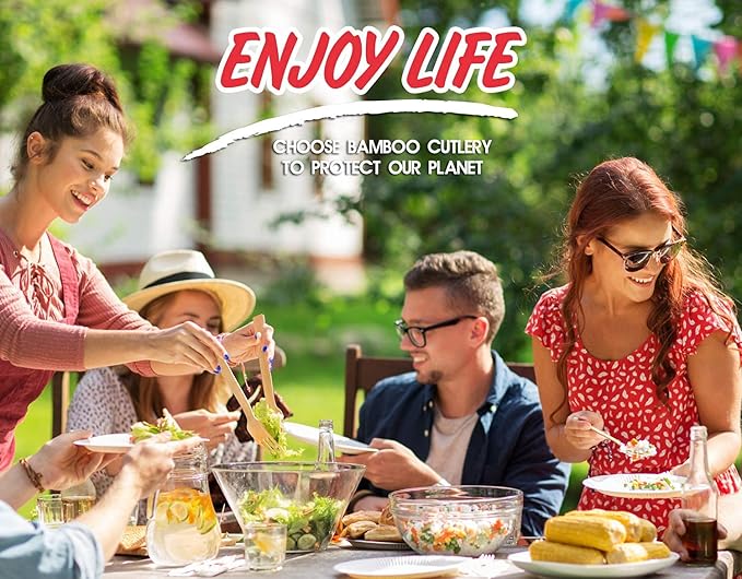 - ♻【BIODEGRADABLE】The bamboo cutlery heavy duty are designed for one-time use, rapid degradation, and environmental protection, which means that you can facilitate your customers and the earth. This bamboo tableware set can be used as a commercial compost, without the need to send the used tableware to the garbage buried yard. It is an excellent alternative to traditional wood or plastic.