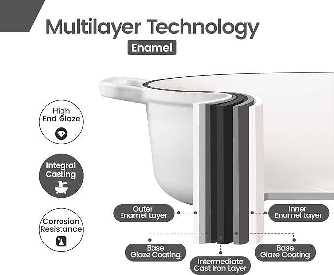 - Suitable for 3-5 people: The 3.5 quart enamel Dutch oven is the choice for cooking food and desserts. Its design makes your food look more delicious