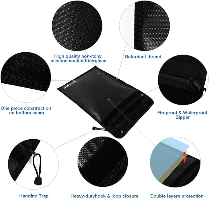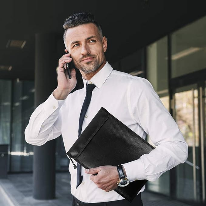 - Fire and Water Resistant: The fireproof document pouches are made from high quality, non-itchy silicone-coated fiberglass that can withstand temperatures up to 4200℉. They protect your documents and valuables from fire damage and are not only fire-resistant but also highly water-resistant, safeguarding your items if they get wet. These bags are suitable for both indoor and outdoor use.