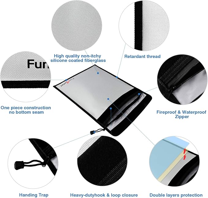 - Protect Your Belongings: The FunOwlet bag is designed to protect valuable items from fire, rainwater, and malfunctioning lithium battery packs. These fireproof document bags ensure your important belongings stay safe even during unexpected fires.