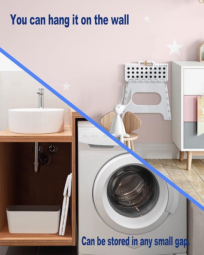 - ✔【Space Saving Foldable Stool 】-ACKO step stool save your closet space more than 90% when it folded up.It's quickly and easily folds away for convenient storage so you can opens with one flip of the hand.Also you can hides them in corner at home because it's so compact.