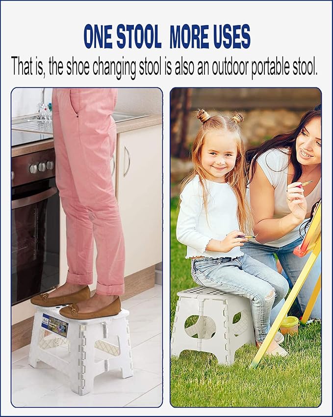 - ✔【Portable Folding Stool】-Great folding stool for in the kitchen, office, bathroom, rv's and more. When you go out for a picnic, are you worried about is there not enough room for place stool? Carry this quick-fold step stool wherever you go.