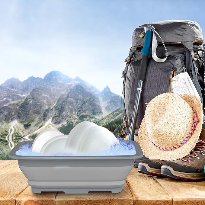 Collapsible Ice Bucket - 10-Liter Portable Outdoor Multi-Use Basin, Dish Tub, and Storage Basket for Camping and Tailgating by Wakeman (Gray)