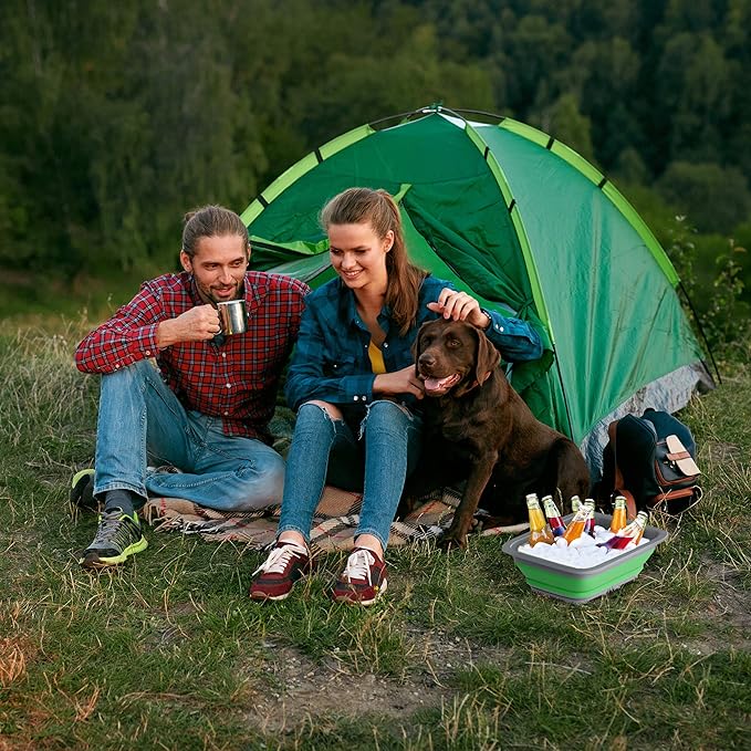 Collapsible Ice Bucket - 10-Liter Portable Outdoor Multi-Use Basin, Dish Tub, and Storage Basket for Camping and Tailgating by Wakeman (Green)