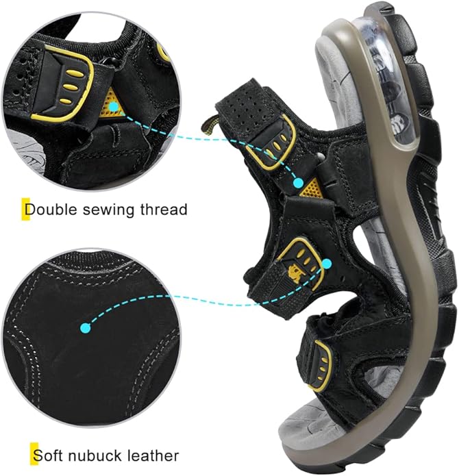 CAMEL CROWN Men's Leather Sandals for Hiking Walking Beach Treads Water Athletic Outdoor with Premium Air Cushion | Waterproof