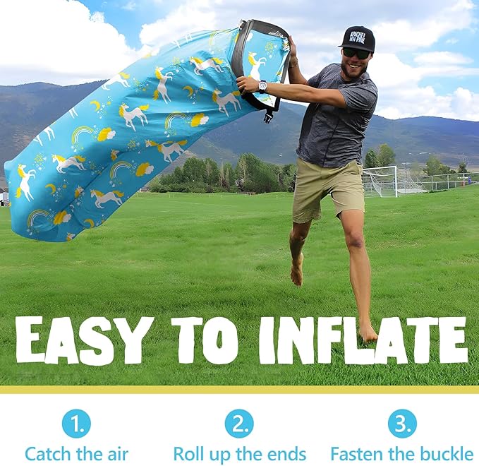 - Easy Inflation Design -- No pump required for AlphaBeing air lounger. Just a few scoops of air and this inflatable lounger is ready to hangout in. This is a must-have for any BBQ, Beach, Hike, Concert, or Camping Trip. Folding to 12"x 8"x 4"and fitting in its own carrying bag with shoulder strap, this air sofa is ready to be taken anywhere with you.