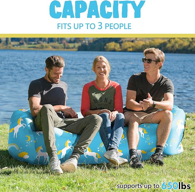 - Anti-Deflation Technology -- Love the idea of an inflatable couch but hate the idea of constantly needing to fill it up? Thanks to our anti-deflation technology, our air chair retains air twice as long as other Inflatable Loungers for an experience that is amazing! Our lounger is made with superb craftsmanship and high-quality Ripstop fabric that is lightweight, comfortable and strong enough to support 650 lbs!
