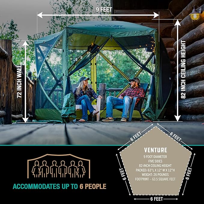 CLAM Pop Up Screen Tent, Outdoor Camping Gazebo Canopy, Venture, 9' x 9', Green