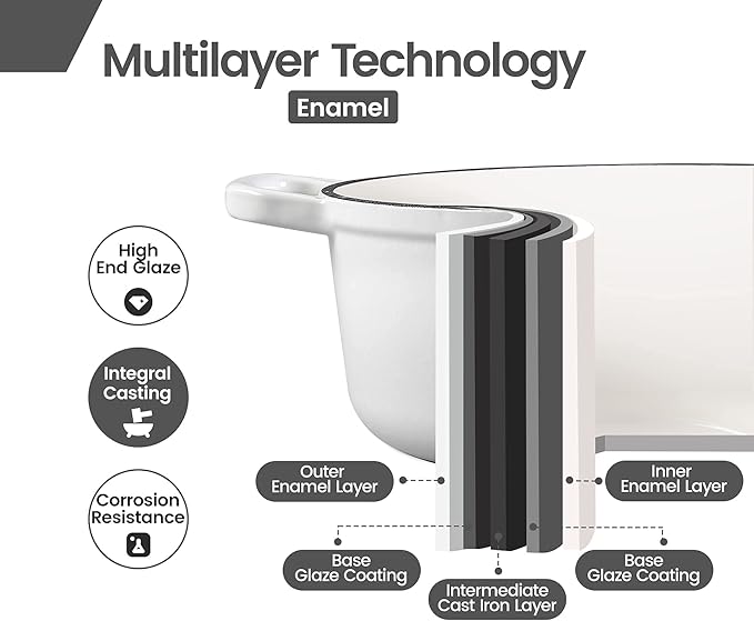 - Suitable for 6-7 people: The 5.5 quart enamel dutch oven is the choice for cooking food and desserts. Its design makes your food look more delicious