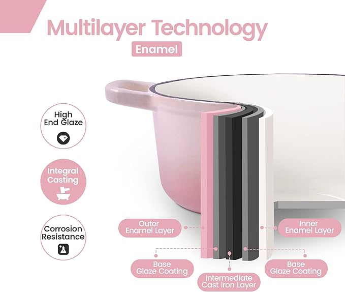 Enameled Cast Iron Covered 5.5 Quart Dutch Oven with Dual Handle, Dutch Ovens with Lid for Bread Baking, Pink