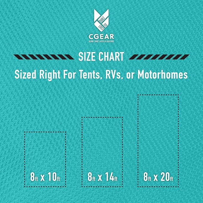 - One-Of-A-Kind Sandfree Technology: Your RV camping experiences just got a major upgrade. CGEAR’s original permeable, environmentally gentle mats are unlike any other. The unique weave construction allows wind, soil, moisture, and sunlight to easily pass through—turf or grass underneath won’t be harmed—so you can use this tough, military-grade mat in our gorgeous national parks without a worry. Place it outside your RV, tent, camper, or popup for a modern, tidy patio setting.
