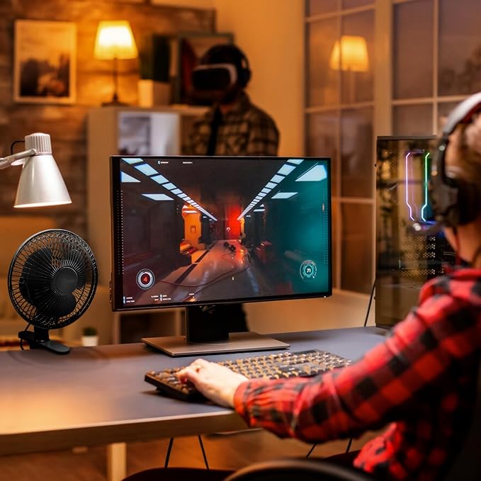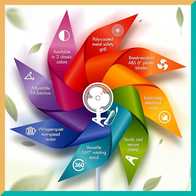 - SAFE CONSTRUCTION: This fan with desk clip features a coated safety grill that keeps fingers and other items at a safe distance from moving blades while it is in use.