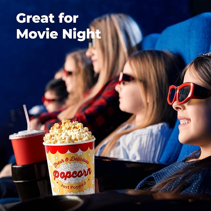 - Suitable for All Occasions - These are perfect disposable popcorn containers for movie night or decors for carnival theme parties. Fit Meal Prep's movie paper popcorn buckets sports a classic design in an attractive yellow and red color combination.