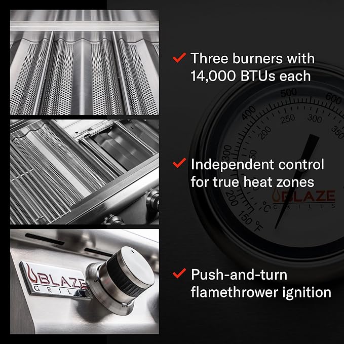 - Exceptional Durability: Perfect for outdoor kitchens crafted from high-quality 304 stainless steel, this Blaze Grill is built to withstand the toughest elements, ensuring longevity and resilience against rust and corrosion.