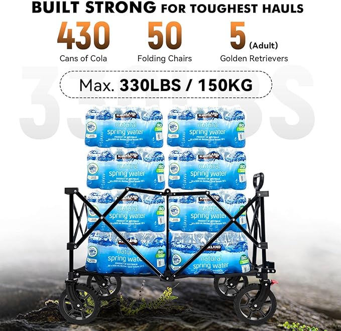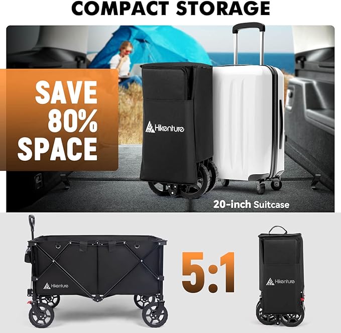Hikenture Collapsible Wagon 330LBS Capacity, 200L Extra Large Wagons Carts Foldable, Heavy Duty Folding Wagons with All-Terrain Wheels, Utility Beach Cart for Outdoor Garden, Black