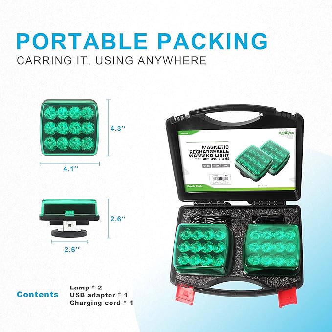 Agrieyes 2Pcs Wireless Emergency Strobe Lights for Trucks,Vehicles, Rechargeable Led Beacon Lights with Super Magnetic, Plow Flashing Hazard Warning Light for Tractor,Automotive, Boat (Green)