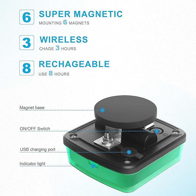 - 【LONGER-LASTING POWER】With a strong magnetic base, suitable for trucks, engineering vehicles, agricultural machinery, etc.; once fully charged for 8 hours, it can be used continuously