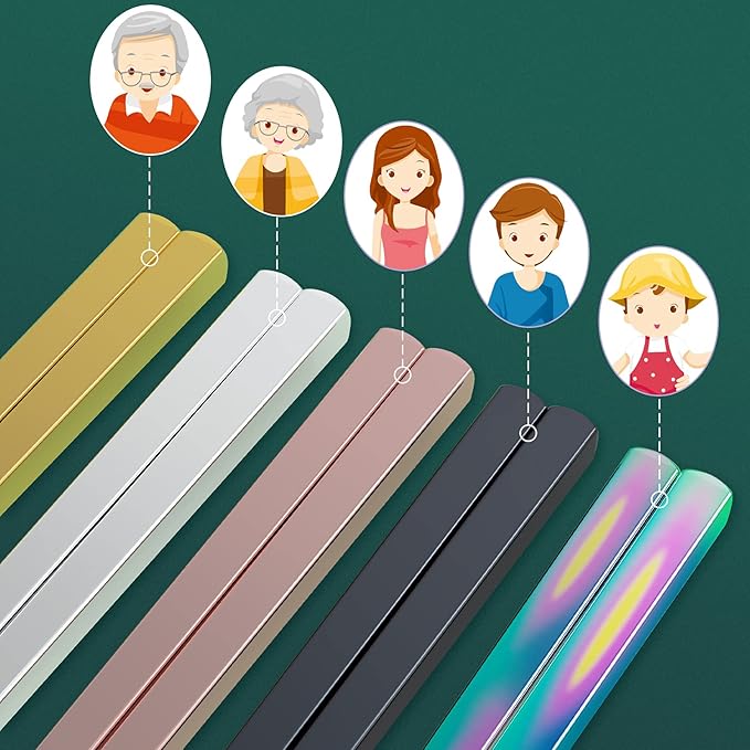 - 【Multipack & Gift Set】With five pairs of metal chopsticks in different colors, each member of the family can choose his or her own color, which is not only cool and cute, but also hygienic and clean. Packaged in a gift box, Glamfields chopsticks are the best choice for gift giving.