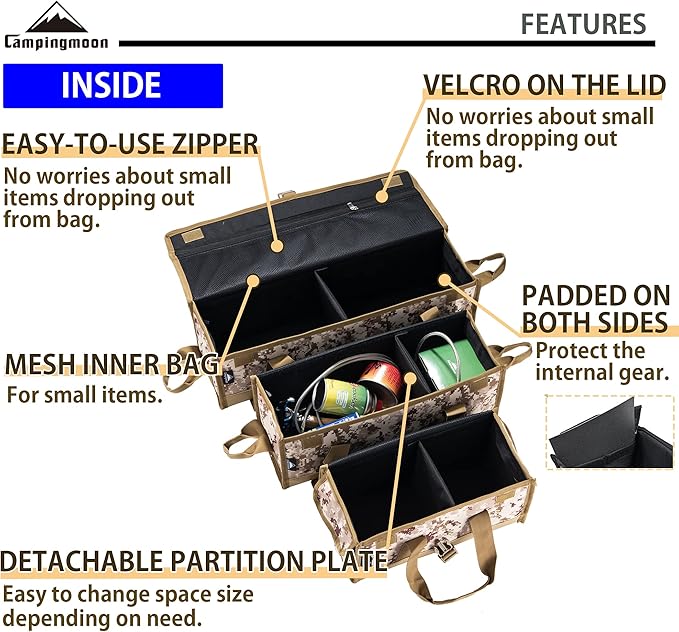 CAMPINGMOON 21.7-inch Bottom Waterproof Outdoor Camping Tent Stakes Hammer Multi-container Box Storage Bag B-160C