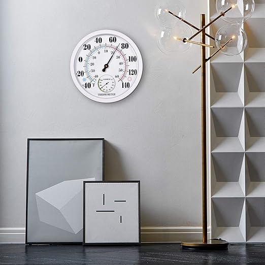 Indoor Outdoor Thermometer Large Waterproof Wall Patio Weather Thermometer No Battery Required Hanging Decor (White)