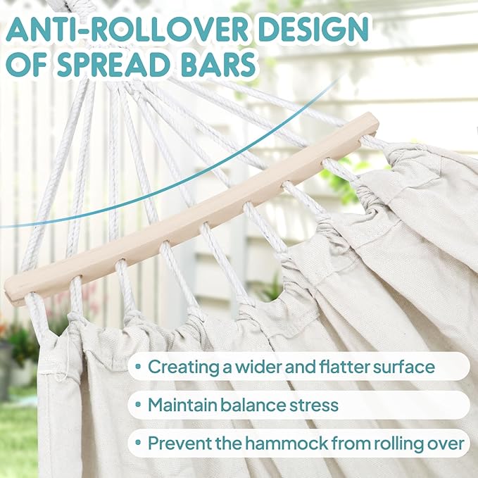 Anyoo Garden Cotton Hammock Comfortable Fabric Hammock with Spreader Bar Sturdy Hammocks Up to 450lbs Portable Lightweight Hammocks with Travel Bag for Camping Outdoor/Indoor Patio Backyard