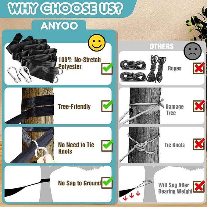 - Easy to Install: Hammock can be set up in just a few seconds. You can attach the hammock to the hammock stand, or tie it to a tree or other objects that can fix both ends of the hammock with white rope or black nylon straps. Equipped with 2 high-quality carabiner and 2 strong black nylon straps. In order to give you the best shopping experience, we will provide you with 2 extra high-density nylon tree straps and 2 S-shaped hooks.
