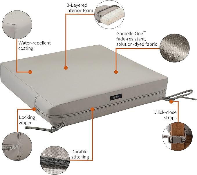 - Water-repellent coating resists stains, helps keep rain out, and protects your cushion foam