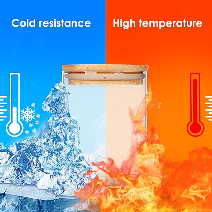 - High Quality: Glass jars made of high-borosilicate glass which features with great stability, higher hardness, heat resistance with better light transmission. Each jar cover comes with a food-grade silicone sealant ring, more effective in preventing fluid flow and the entry of gases and bugs