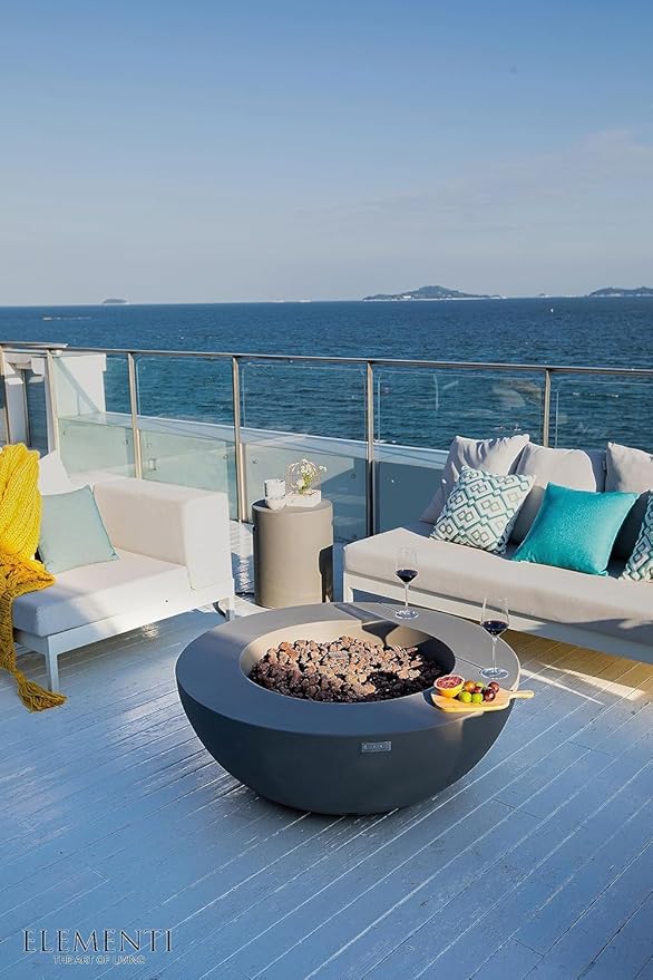 - ✅【Heavy Duty Outdoor Fire Pit】ELEMENTI Gas patio heater the body construction is Handcrafted glass-fiber reinforced concrete. The table is durable and finished to have a high resistance to heat. Whole body is LIGHT GREY color Brighten up your quality of life with a backyard fire pit as your outdoor centerpiece that will have the reflections of dancing flames keeping you and your loved ones warm and cozy