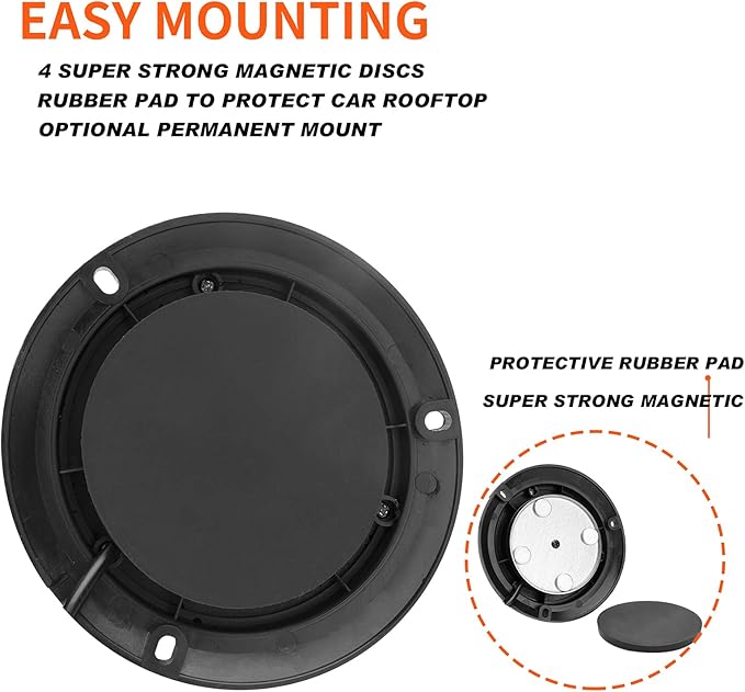 - 【easy to install】With 4 strong magnets at the base with rubber feet, this LED strobe light can be easily installed on the metal top of any vehicles. Easy to install and disassemble and It can be used on vehicles with a maximum speed of 45mph.