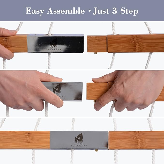 - Curved Spreader Bar & Balance Ropes: 55 inch spreader bars with marine varnish to seal are stylish and weather resistant. And the bar could be knocked down for easy storage and carriage. Comes with balance ropes, SUNCREAT hammock combo cares more about your safety. Don’t need to worry about flipping over any more