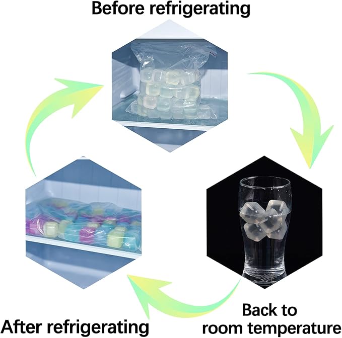 - 【CONVENIENT, EASY AND REUSABLE】: Have ice cubes ready-to-use at all times without having to refill ice cube trays with water. These reusable ice cubes can be washed, dried and stored right after using. Can be replaced in the freezer immediately for future use.