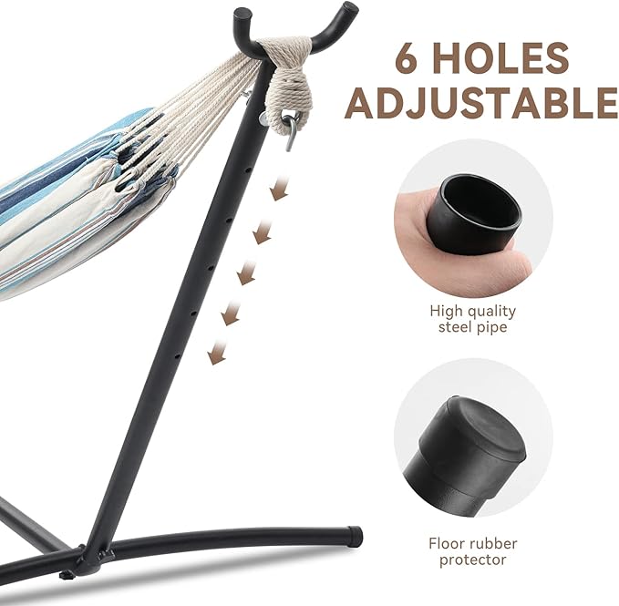 PNAEUT Double Hammocks with Stand for Outside, Portable Space Saving Heavy-Duty Steel Stand for Indoor Outdoor Patio with Carrying Bag, 450 lbs Capacity (Lightblue)