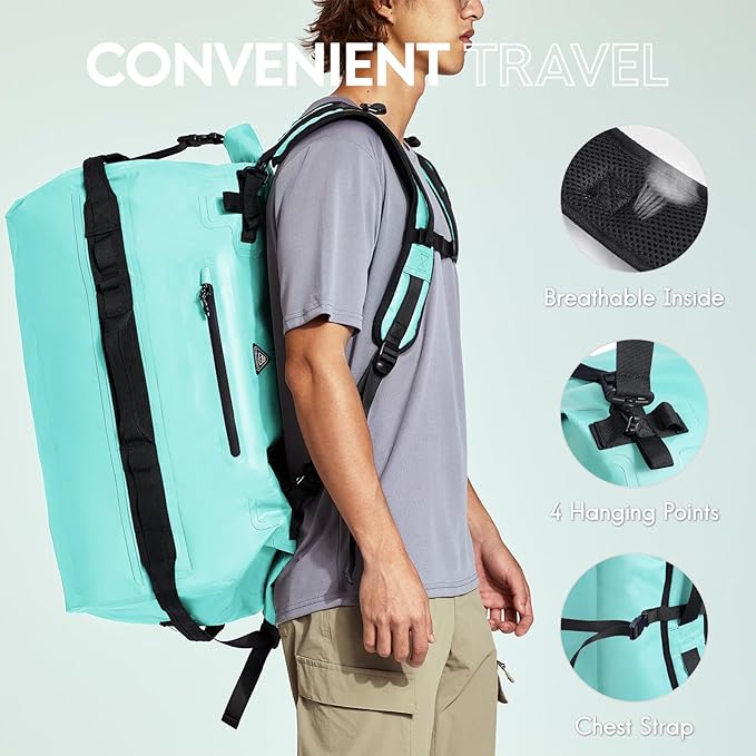 Haimont Large Waterproof Duffel Backpack Roll-Top Heavy Duty Dry Duffle Bag for Boating, Travel, Motorcycle, Kayaking, Camping, 60L