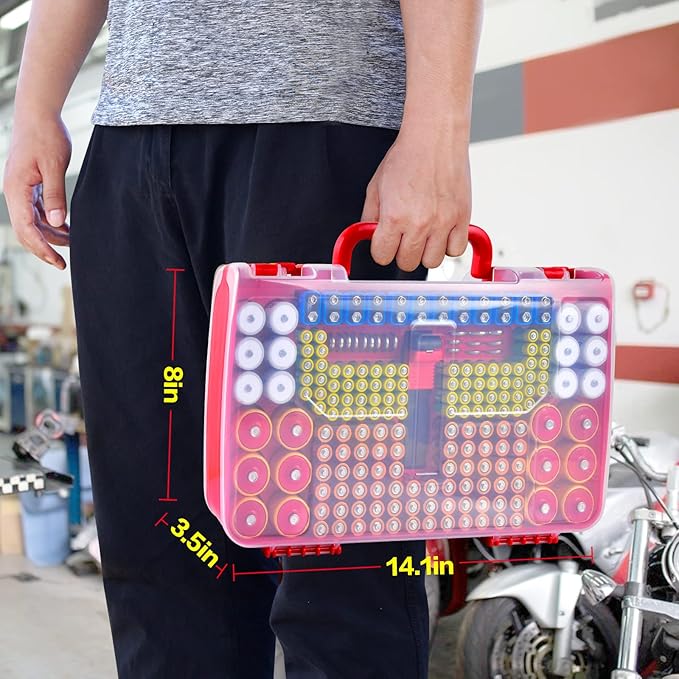 - Large capacity battery box - Battery holder specially designed for storing batteries, battery case can hold 269+ different types of battery pack and BT168 battery tester for aaa, aa, c, d, 9v, can hold 84*AAA, 78*AA, 12*D, 12*C, 12*9V, 14*AAAA, 6*CR2, 12*CR123, 10*4LR44, 5*23A, 6*18650 and 18pcs button batteries. Battery storage organizer keep batteries organized and stored neatly, a good battery pro organizer and tester for home improvement items.(Boxes Only, batteries not included)