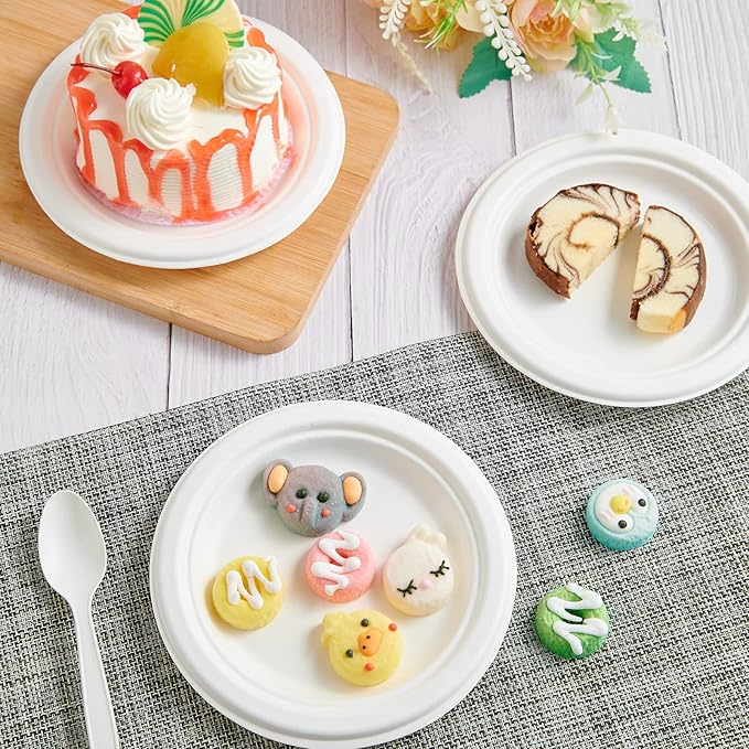 - Heavy-duty Plates: Our biodegradable plates can be used for hot and cold food, Microwave and Freezer safe. These dessert plates have good oil-resistant, heat-resistant, and cut-resistant. When you use them, you don't need to worry about them breaking