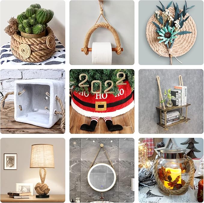 - PREMIUM TWISTED JUTE ROPE - Twisted by 4-strand natural high quality jute which is durable, soft, light weight, flexible and withstand harsh conditions. It can be cut into any length without entanglement. This all-purpose utility rope is ideal for varieties of indoor and outdoor applications.