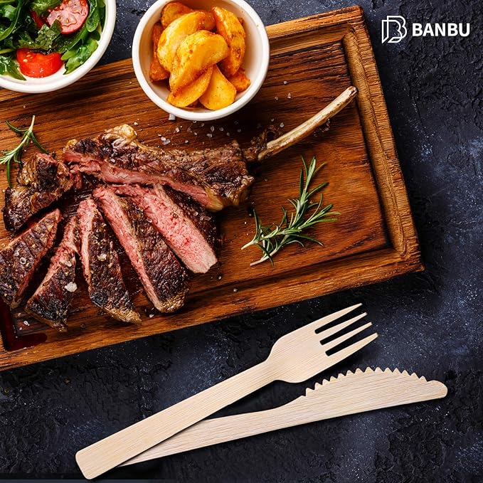 - ♻【BIODEGRADABLE】The bamboo cutlery are heavy duty and designed for one-time use, rapid degradation, and environmental protection, which means that you can facilitate your customers and the earth. This bamboo tableware/flatware set can be used as a commercial compost, without the need to send the used tableware to the garbage buried yard. It is an excellent alternative to traditional wood or plastic.