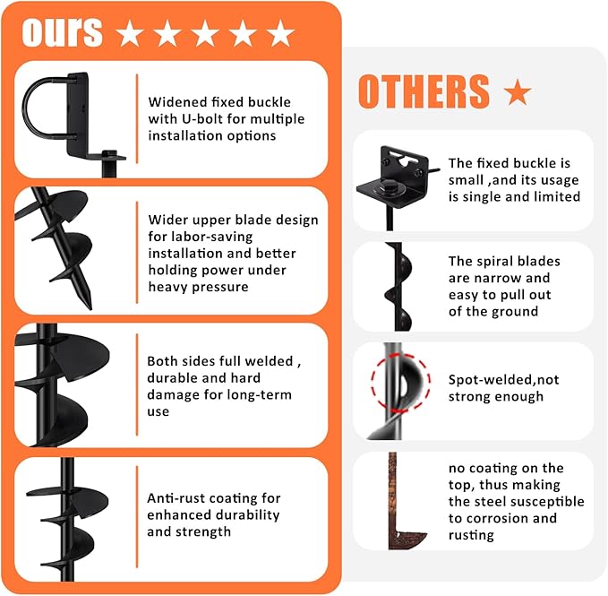 - High Quality:Our ground stakes are made of high quality steel with chorome plate coating to help prolong the life of the trampoline stakes, these shed anchor kits are built to last, ensuring long-lasting performance and reliability.