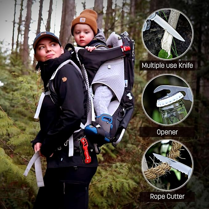 - COMPACT AND EASY TO CARRY: Featuring a pocket knife for men convenient keychain design, this lightweight multi-tool easily fits into your pocket, backpack, or on your gear, making it ideal for camping, hiking, and travel.