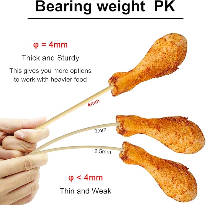 - STURDY & DURABLE -with 4mm diameter thick 12 inch long bamboo sticks are sturdy & durable to hold heavy food easily.