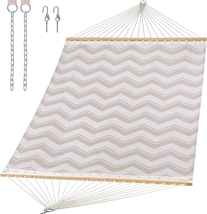 SUNCREAT Hammocks Two Person Tree Hammock, Heavy Duty Hammock for Poolside, Garden, Backyard, Patio, 450lbs Capacity, Gray Waves